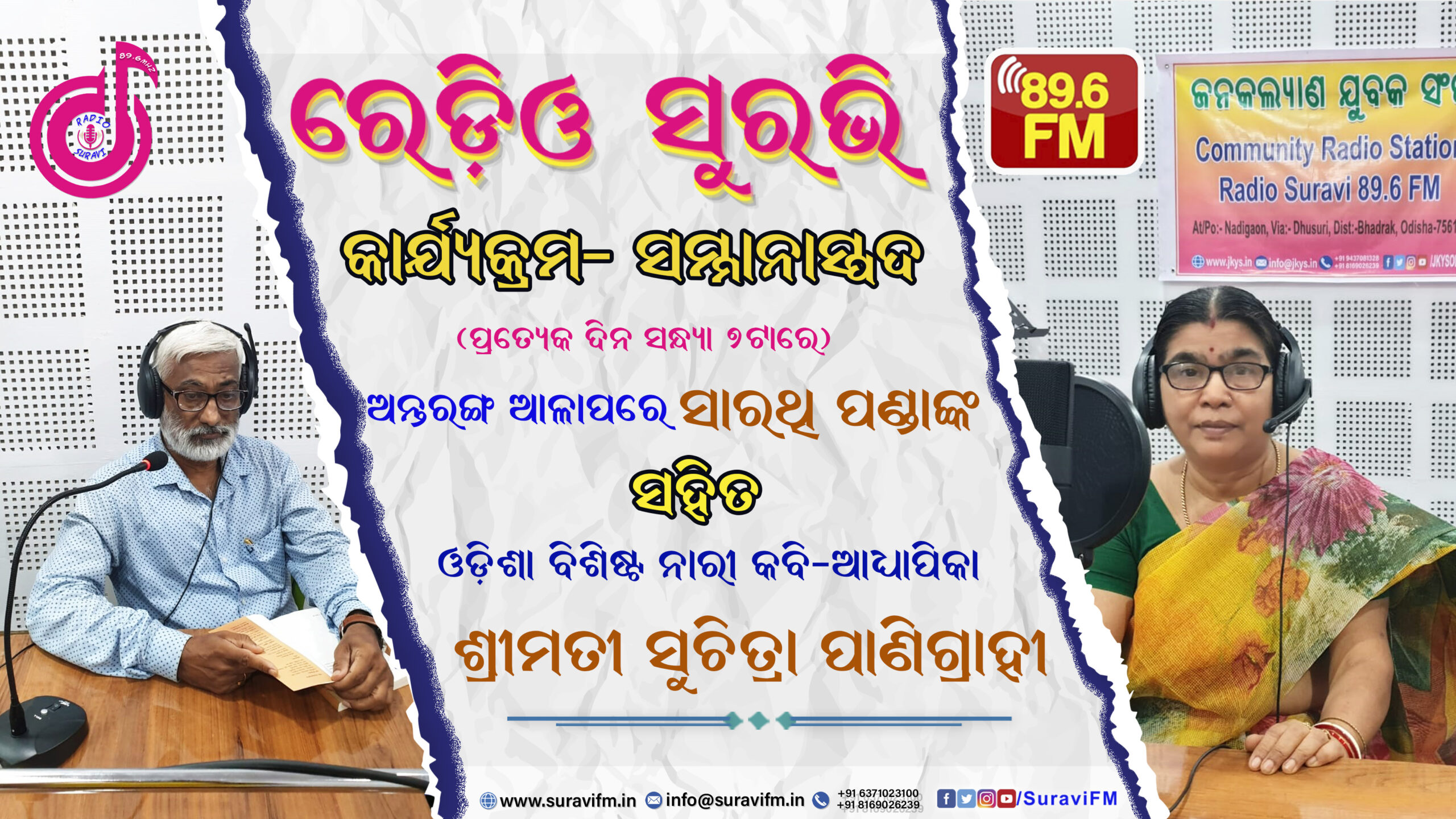 ଅନ୍ତରଙ୍ଗ ଆଳାପରେ ସାରଥି ପଣ୍ଡାଙ୍କ ସହିତ ବିଶିଷ୍ଟ ନାରୀ କବି-ଆଧ୍ୟାପିକା ଶ୍ରୀମତୀ ସୁଚିତ୍ରା ପାଣିଗ୍ରାହୀ 📻 Radio Suravi 89.6 FM, Nadigaon. (📻ସୁରଭି ୮୯.୬ ଏଫ୍ ଏମ୍ , ନଦୀଗାଁ )